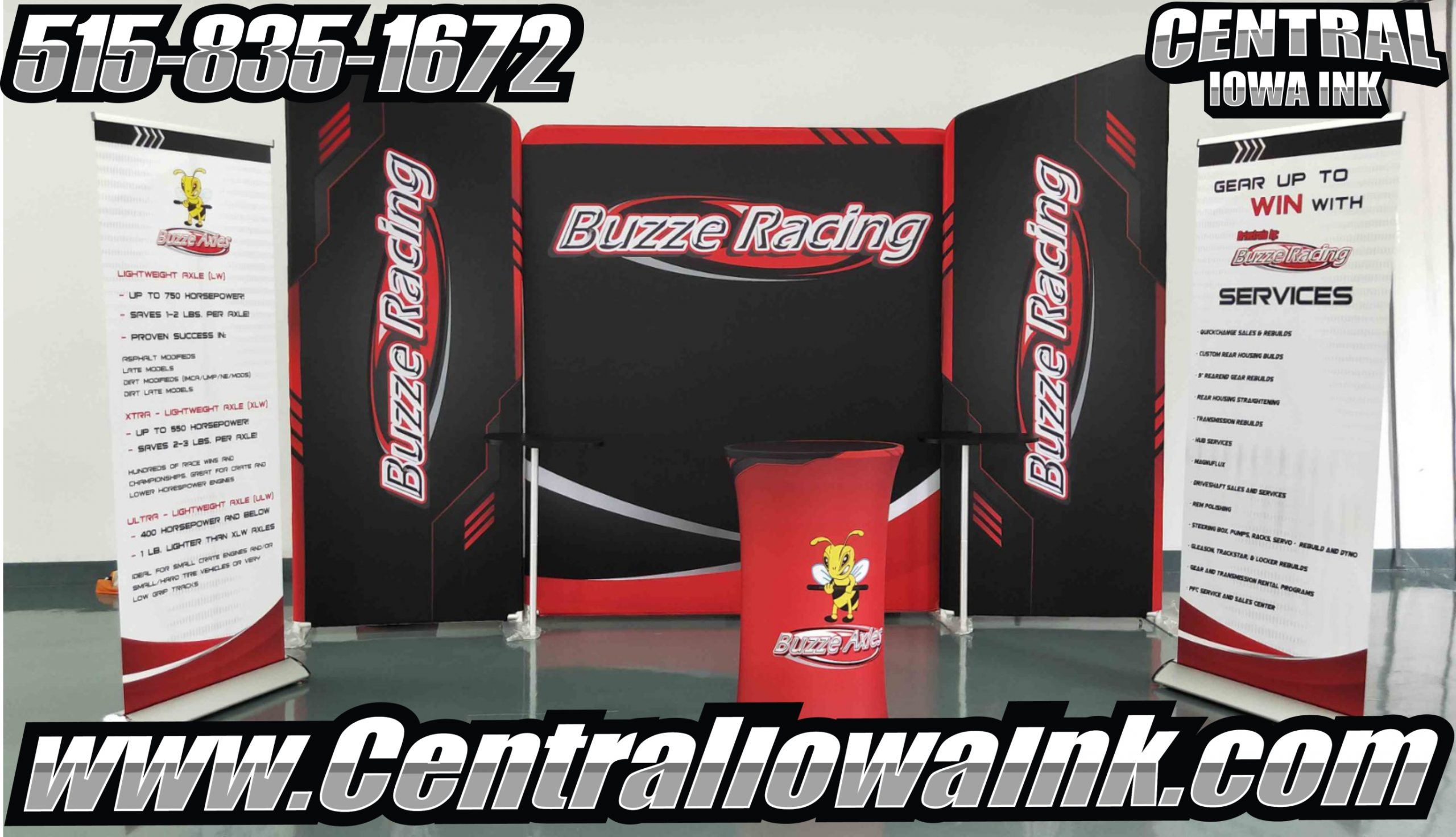 Central Iowa Ink offers full service affordable design and production for all your trade show needs. Weather your event is Indoors or Outdoors we have a solution to fit your needs! These items are 100% fully customizable to showcase your business with an eye catching design to draw in a crowd! We can help! Contact us today for all your custom Trade Show needs!